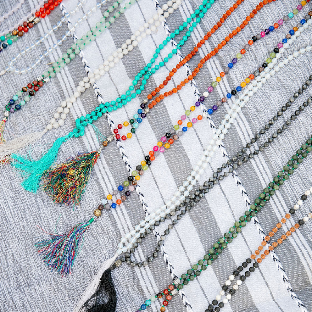 There are 108 beads on each mala and you take your finger and you repeat your daily mantra each time you slide your fingers over a different bead. Once you do that 108 times, you turn the mala over and do it again. Can you imagine the power of repeating to your mind a powerful mantra 216 times?